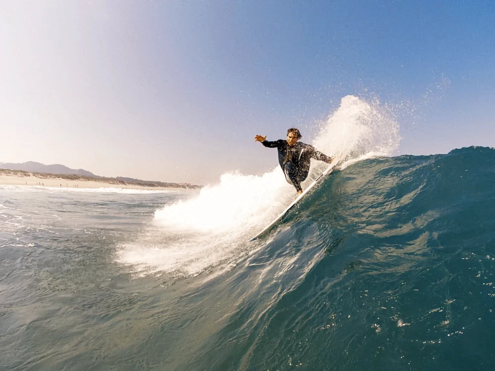 Für die Surfkurse steht euch moderne, professionelle Surfausrüstung zur Verfügung. Absolute Anfänger starten auf 8’0–9’0 Softboards, fortgeschrittene Surfer steigen auf kleinere Softboards oder Hardboards (6’4–7’6) um. Alle Teilnehmer erhalten einen warmen 4/3 mm Neoprenanzug.
